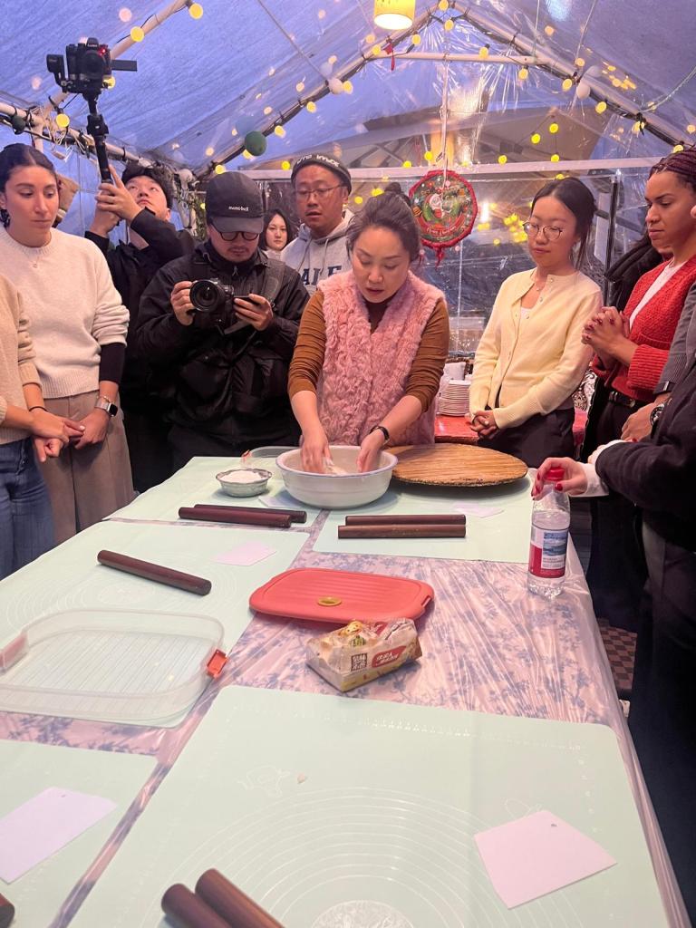 Later die dag gingen we weer naar Hutong, dit keer voor een workshop dumplings maken. De gastvrouw wist te vertellen dat de president van Oostenrijk deze workshop ook had gehad – is dat even mooi meegenomen. In de avond bezochten we een Chinees badhuis, dit was echt een hoogtepunt. Op de eerste verdieping waren de baden, op de tweede was een enorm buffet aan vruchten en sappen dat inbegrepen was bij de prijs en een bar, op de derde en vierde verdieping allerlei ruimtes massages, mahjong, poker, en filmzalen. Nadat je in de baden gegaan bent krijg je een soort pyjama van hen voordat je naar boven gaat – zie foto.