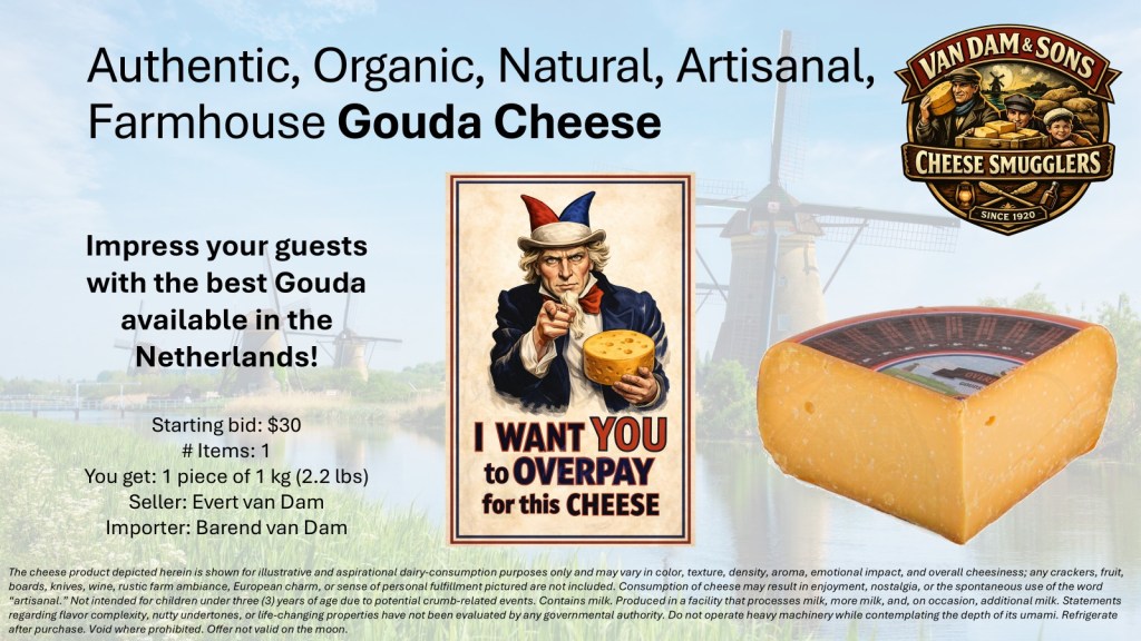 Ik zelf stelde een blok Goudse kaas ter beschikking: